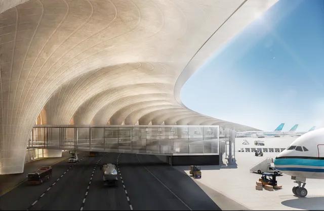 航站樓建筑面積約為708,111m2,地下三層,地上五層。科威特國際機場的擴建總承包商:Limak Holding Inc, Turkey;方案由英國福斯特建筑事務所(Foster & Partners)完成,建筑的每個立面長達1.2km,高25m。一期工程按每年客運吞吐量達到1300萬人次設計,T2航站樓建成可以滿足2500萬的吞吐量。
